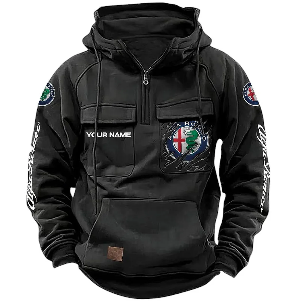 Alfa Romeo Tactical Quarter Zip Hoodie CAR106021525035, Gifts For Men, Him, Husband, Boyfriend – Black