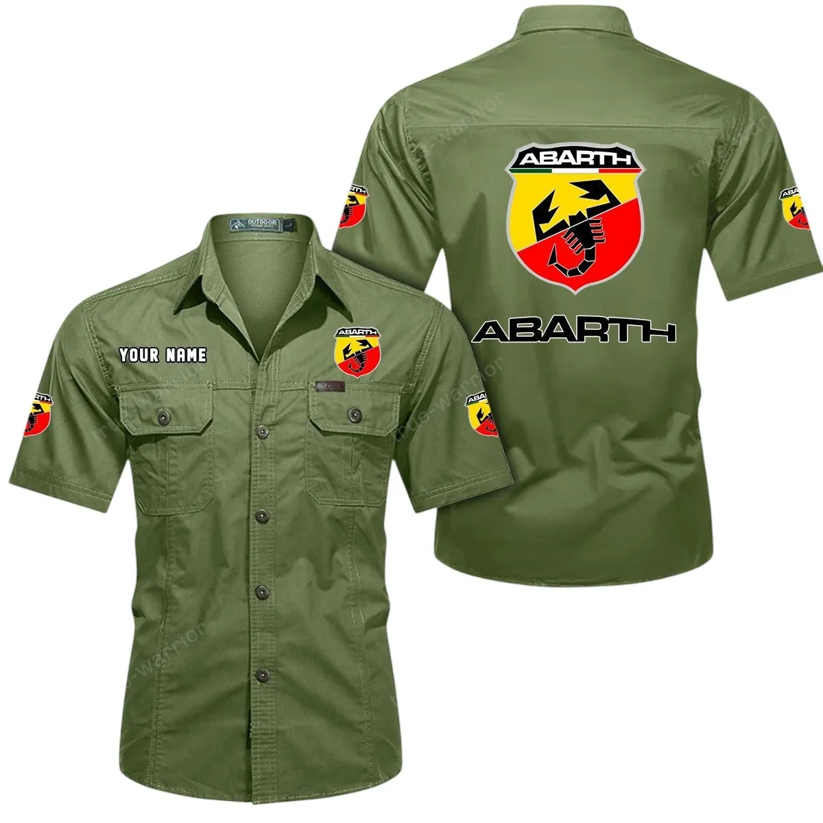 Abarth Short Sleeved Shirt, All Over Print Button Shirt CAR444052625866 - Army Green