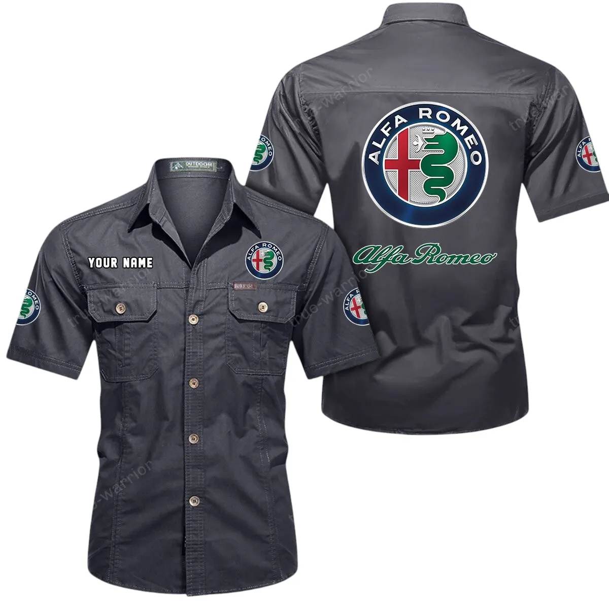 Alfa Romeo Short Sleeved Shirt, All Over Print Button Shirt CAR444052625827 – Gray