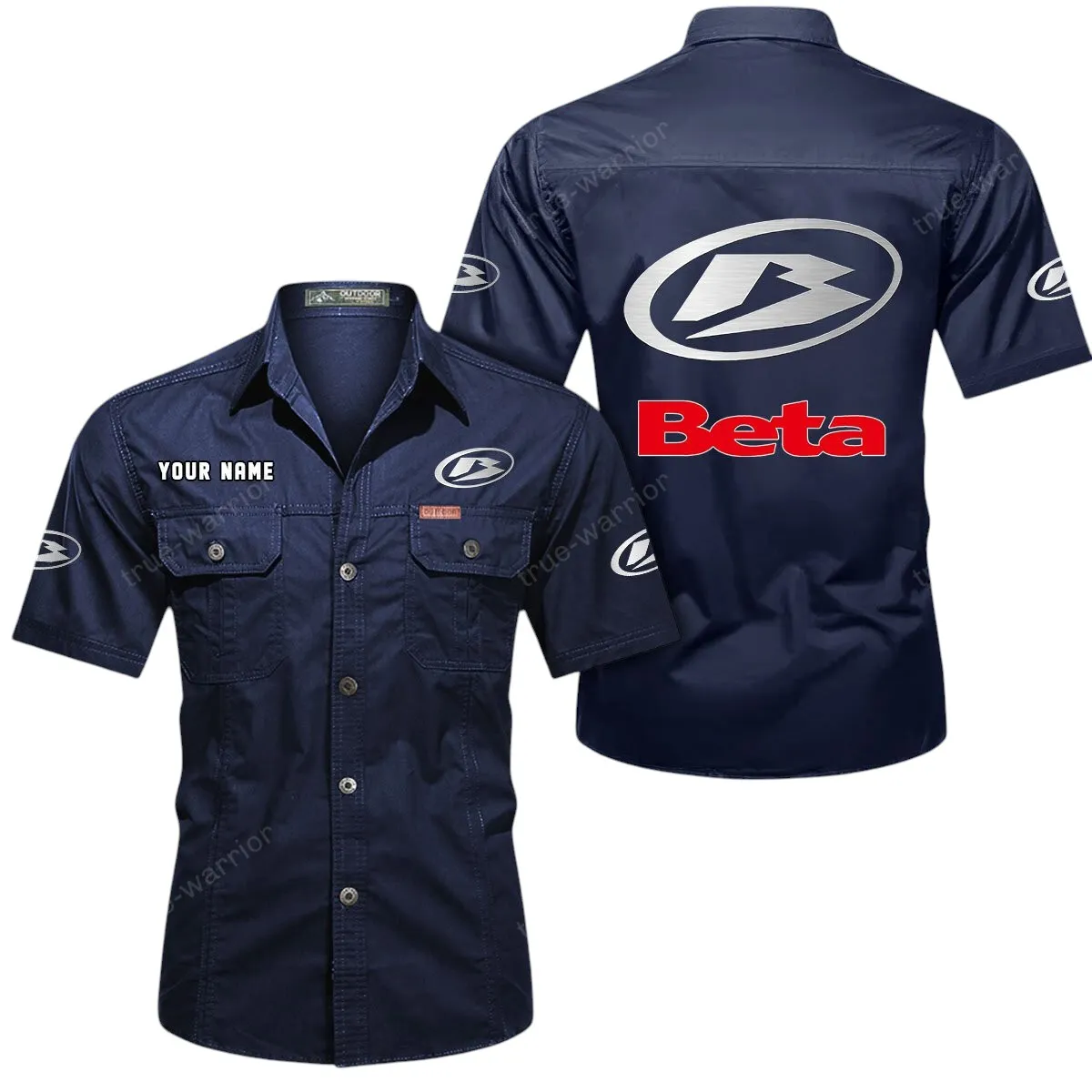 Beta Motorcycles Short Sleeved Shirt, All Over Print Button Shirt CAR444052625791 – Dark Blue