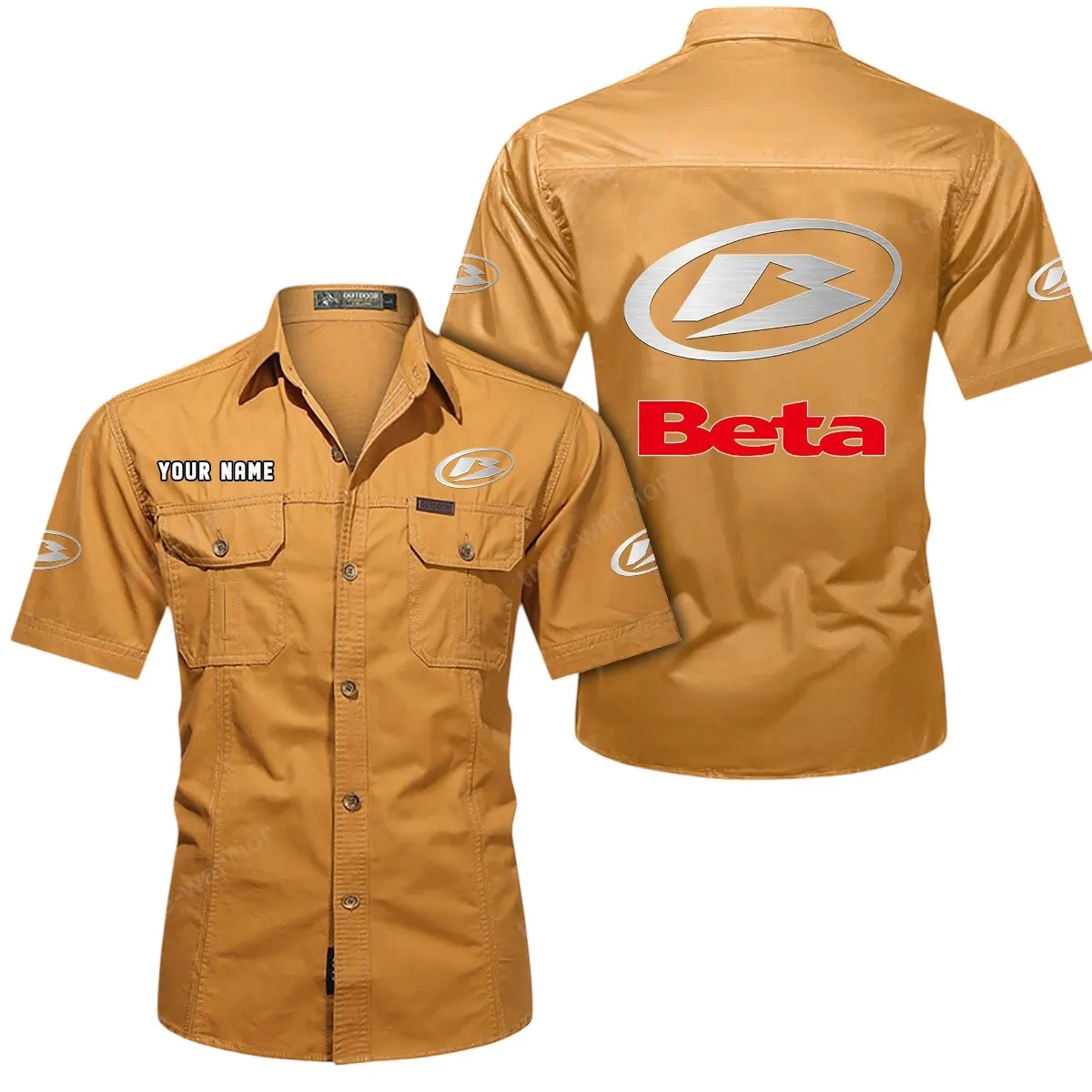 Beta Motorcycles Short Sleeved Shirt, All Over Print Button Shirt CAR444052625791 - Khaki