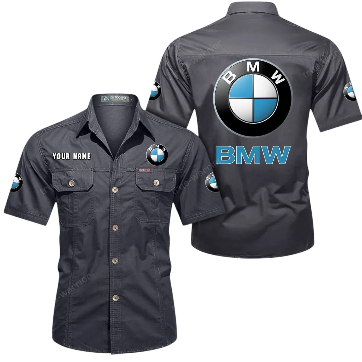 BMW Car Short Sleeved Shirt, All Over Print Button Shirt CAR444052625848 – Gray
