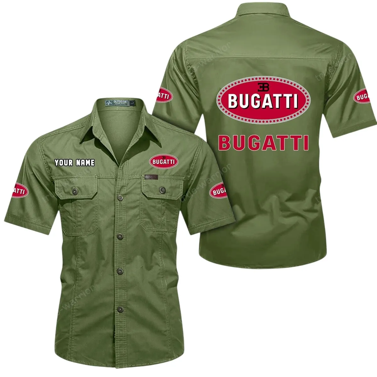 Bugatti Short Sleeved Shirt, All Over Print Button Shirt CAR444052625919 - Army Green