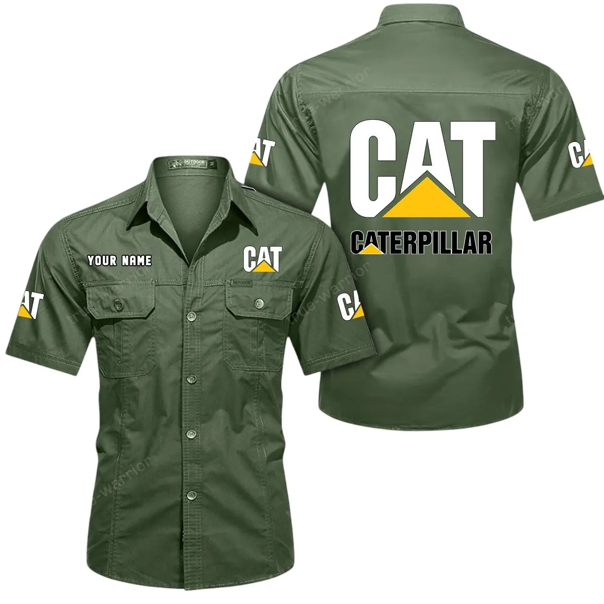 Caterpillar Inc Short Sleeved Shirt, All Over Print Button Shirt CAR444052625883 – Army Green