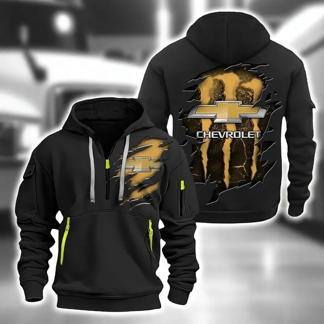 Chevrolet Hoodie Half Zipper CAR0217092025, All Over Print Hoodie Half Zipper – Black