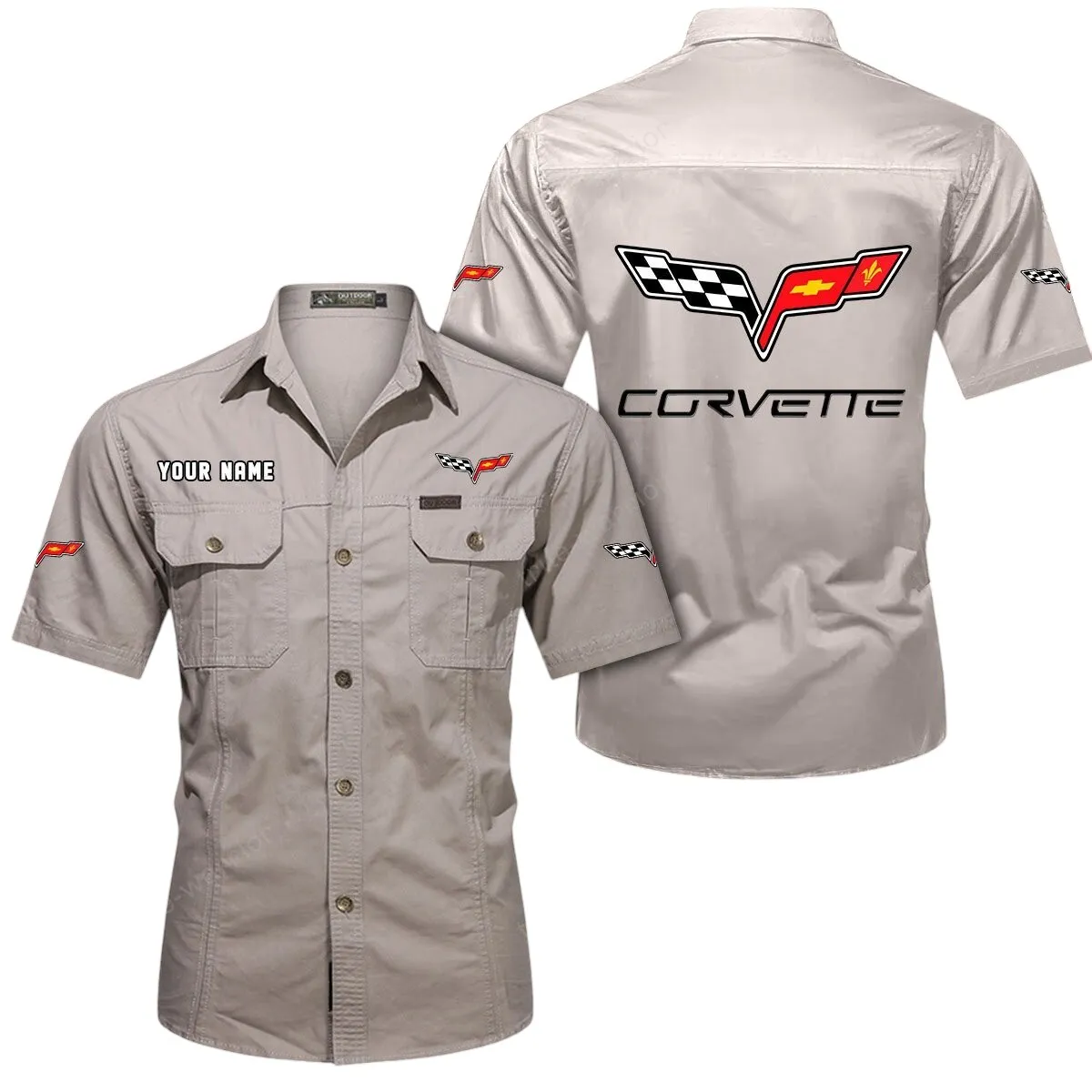 Corvette C6 Short Sleeved Shirt, All Over Print Button Shirt CAR444052625856 – Beige