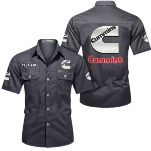 Cummins Short Sleeved Shirt, All Over Print Button Shirt CAR444052625952 - Gray