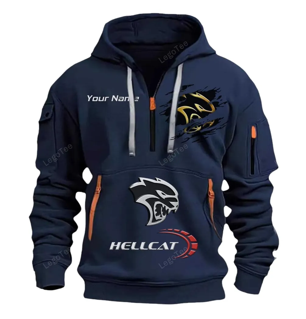 Dodge Challenger Hellcat Half Zip Hoodie CAR113021425822, Best Gift for Him, Husband, Boyfriend – Navy