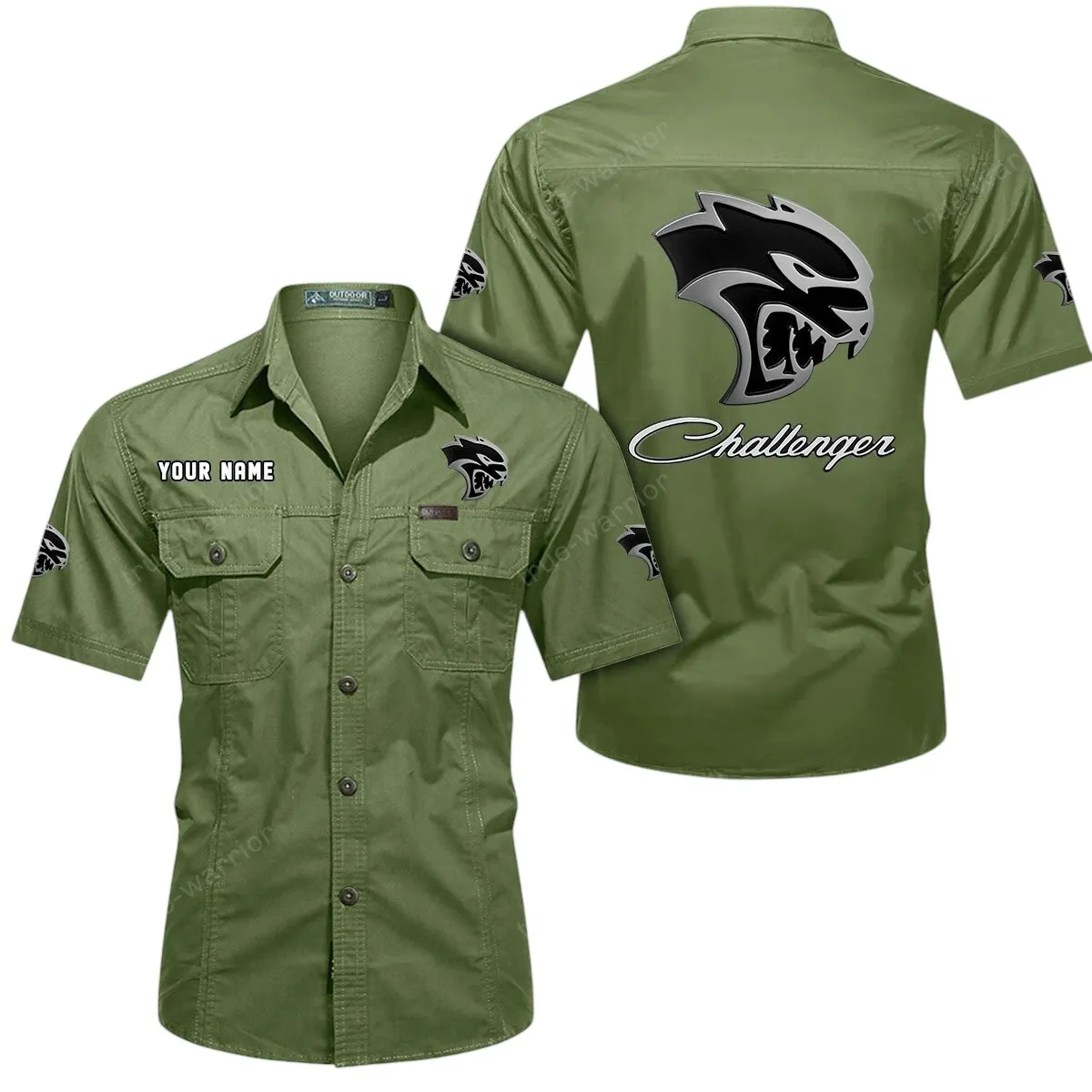 Dodge Challenger Short Sleeved Shirt, All Over Print Button Shirt CAR444052625803 - Army Green