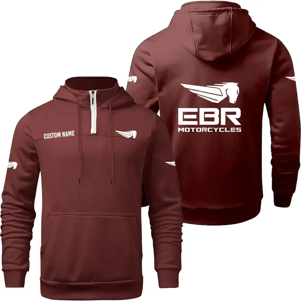 Erik Buell Racing Casual Stand up Collar Hoodie CAR0301022063, CAR All Over Print Casual Stand up Collar Hoodie - Wine Red