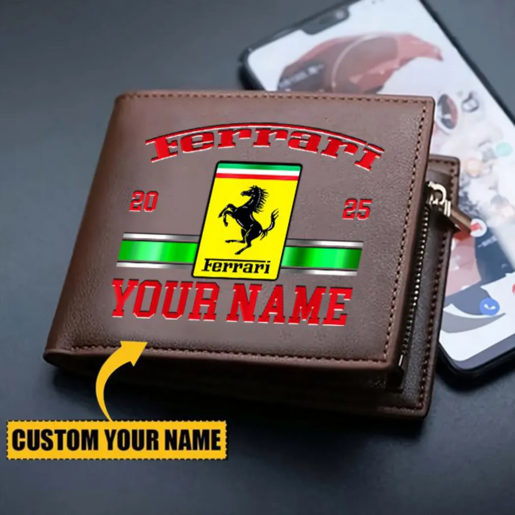 Ferrari Horizontal Leather Wallet, Gift For Ferrari Lovers, Gift For Him, Husband, Boyfriend CAR37030425043