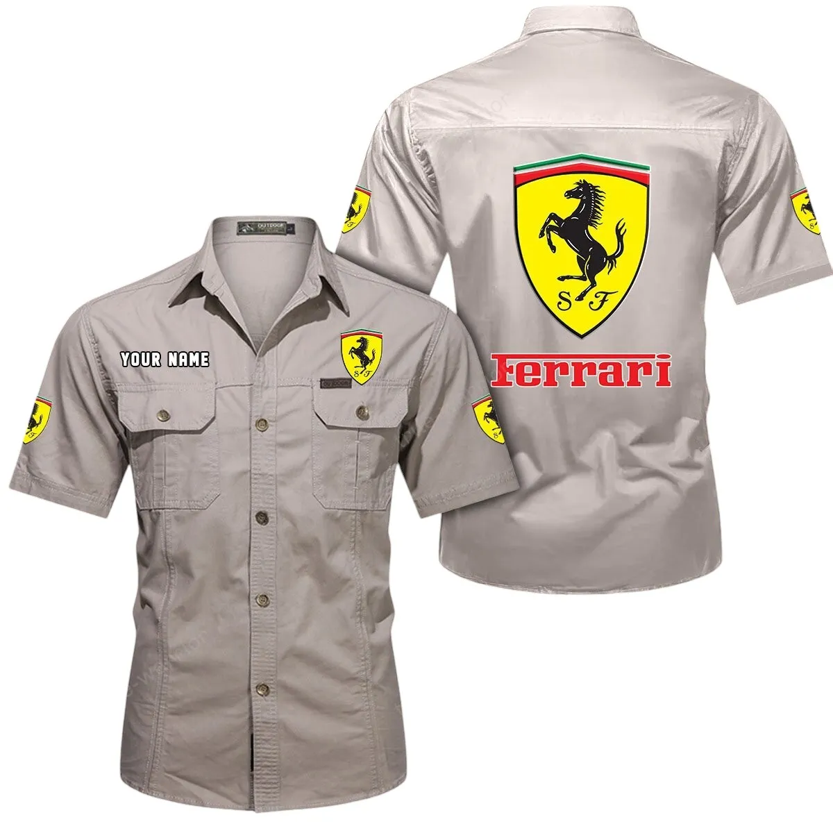Ferrari Short Sleeved Shirt, All Over Print Button Shirt CAR444052625788 - Khaki
