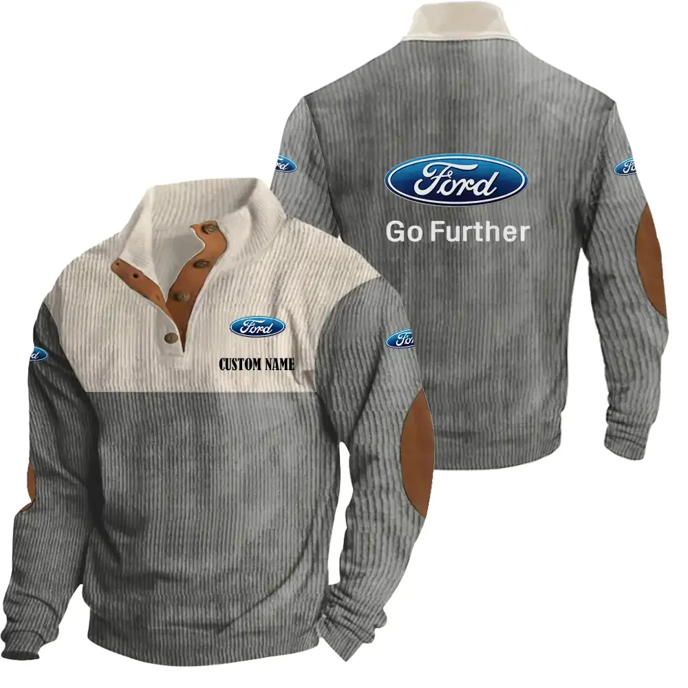 Ford Motor Company Stand Up Collar Base Shirt CAR20012069, CAR All Over Print Stand Up Collar Base Shirt - Grey