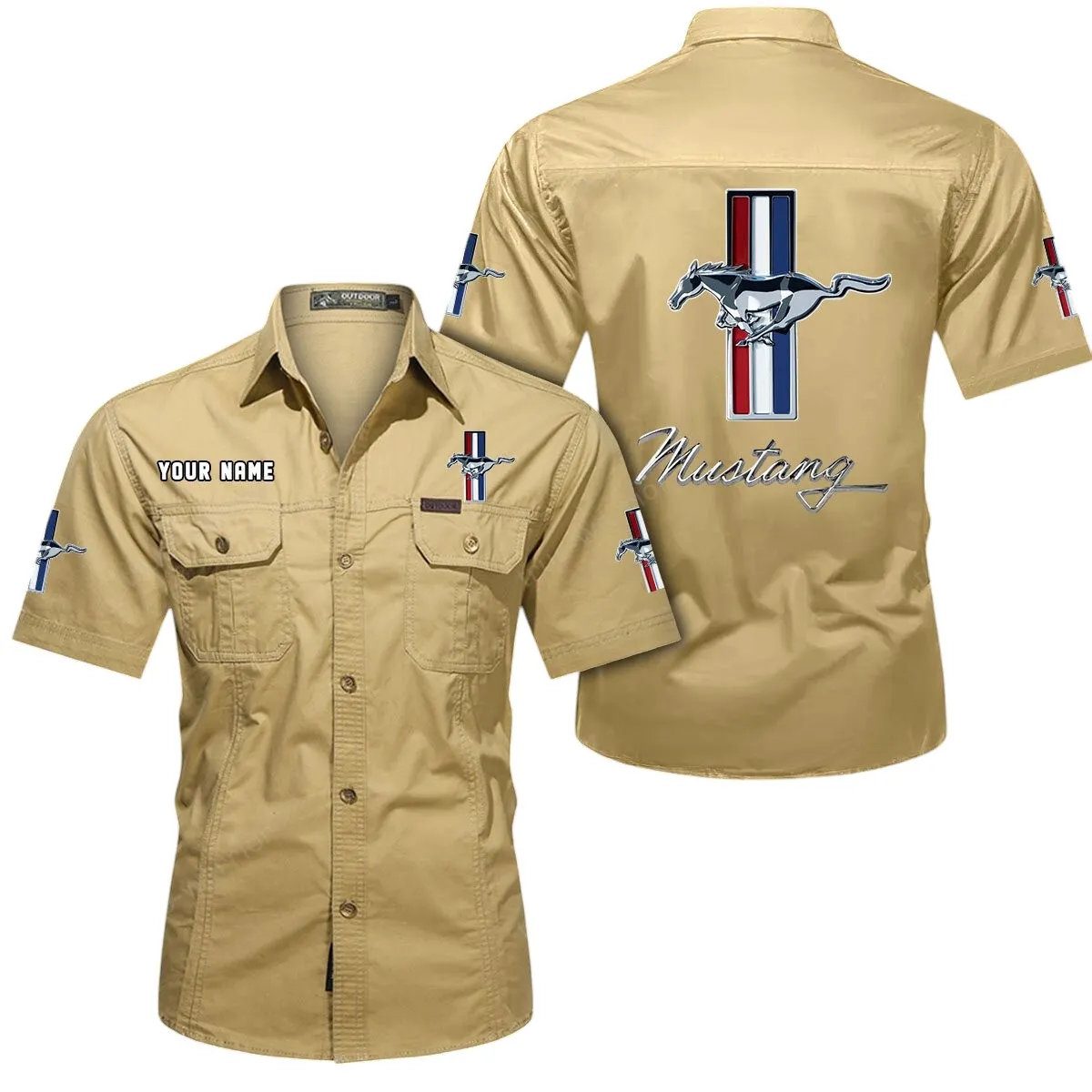 Ford Mustang Short Sleeved Shirt, All Over Print Button Shirt CAR444052625800 – Khaki