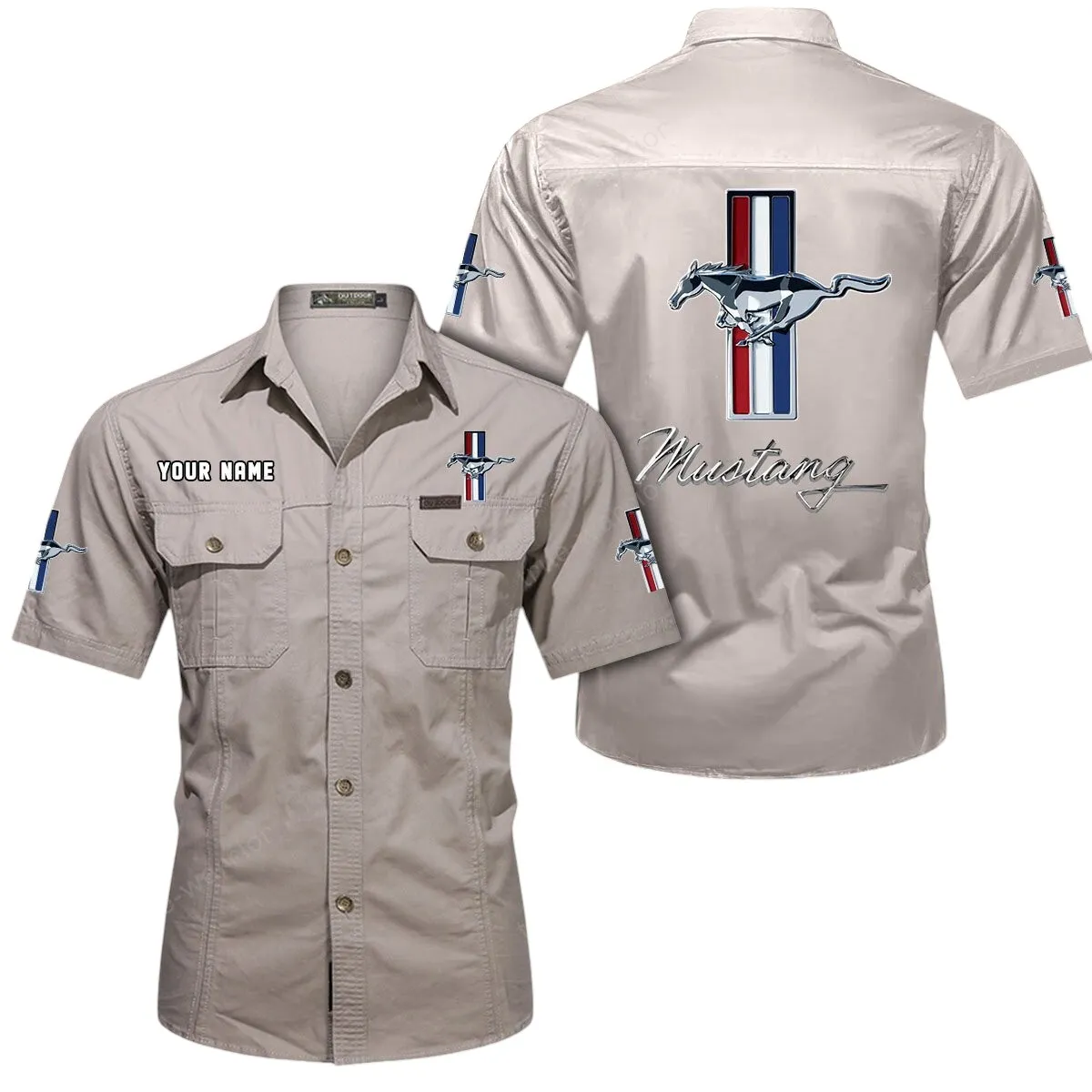 Ford Mustang Short Sleeved Shirt, All Over Print Button Shirt CAR444052625800 - Khaki