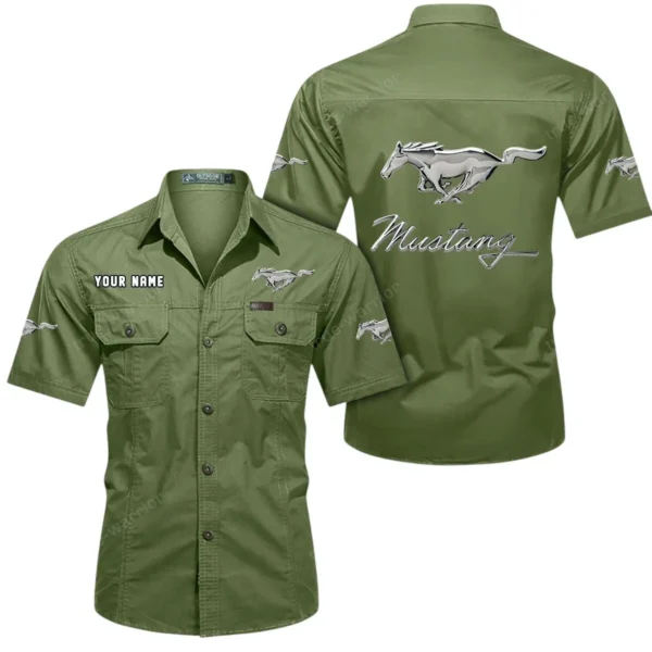Ford Mustang Short Sleeved Shirt, All Over Print Button Shirt CAR444052625869 - Army Green