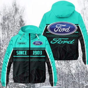 Ford Windbreaker Jacket Waterproof, Gift For Ford Fan CAR305031825229 - Cyan