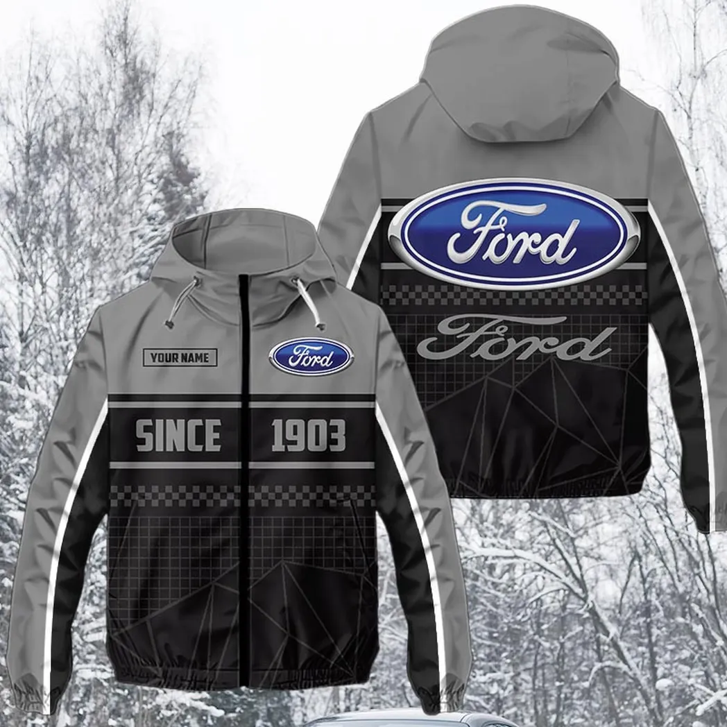 Ford Windbreaker Jacket Waterproof, Gift For Ford Fan CAR305031825229 - Gray