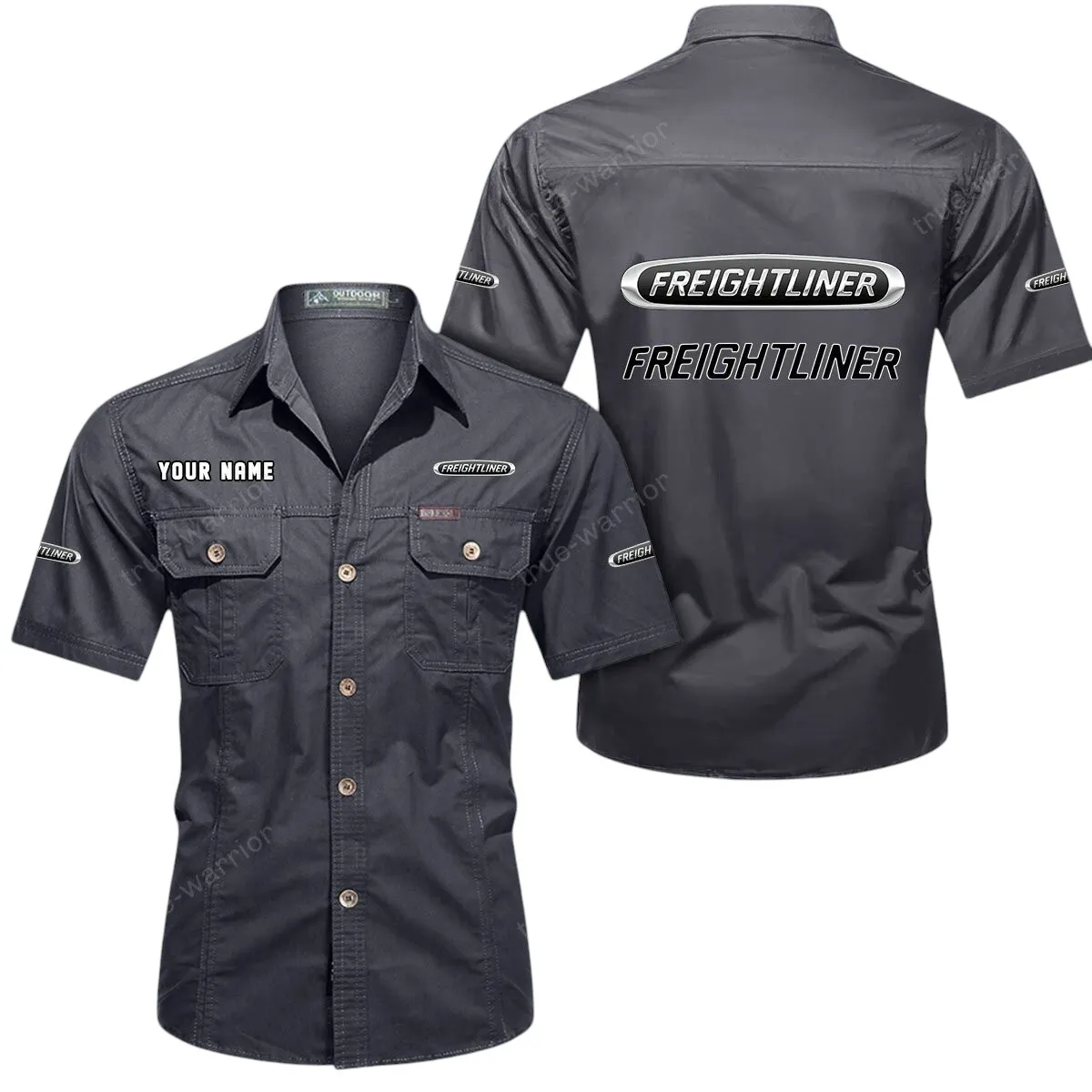 Freightliner Short Sleeved Shirt, All Over Print Button Shirt CAR444052625924 – Gray