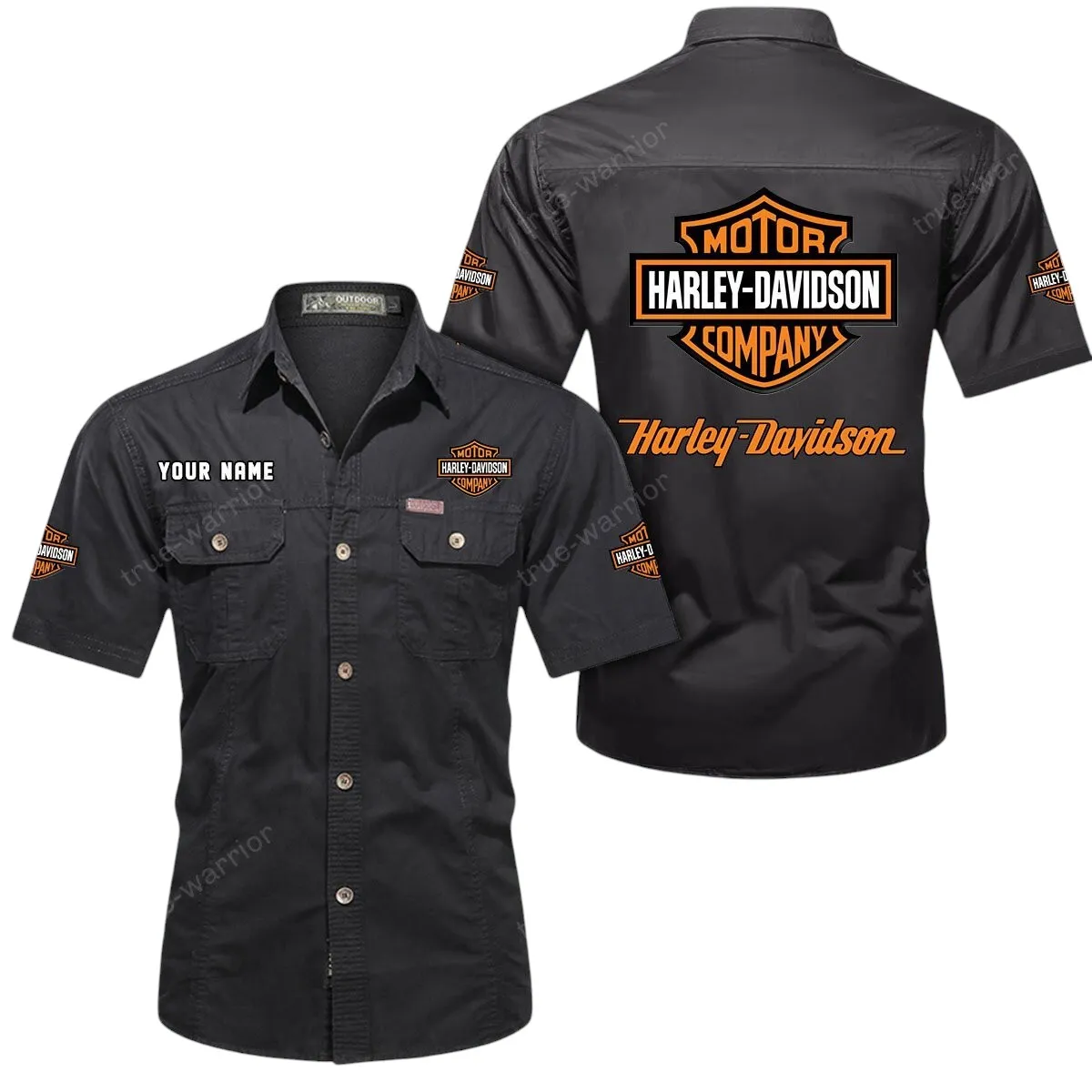 Harley Davidson Short Sleeved Shirt, All Over Print Button Shirt CAR444052625780 – Black