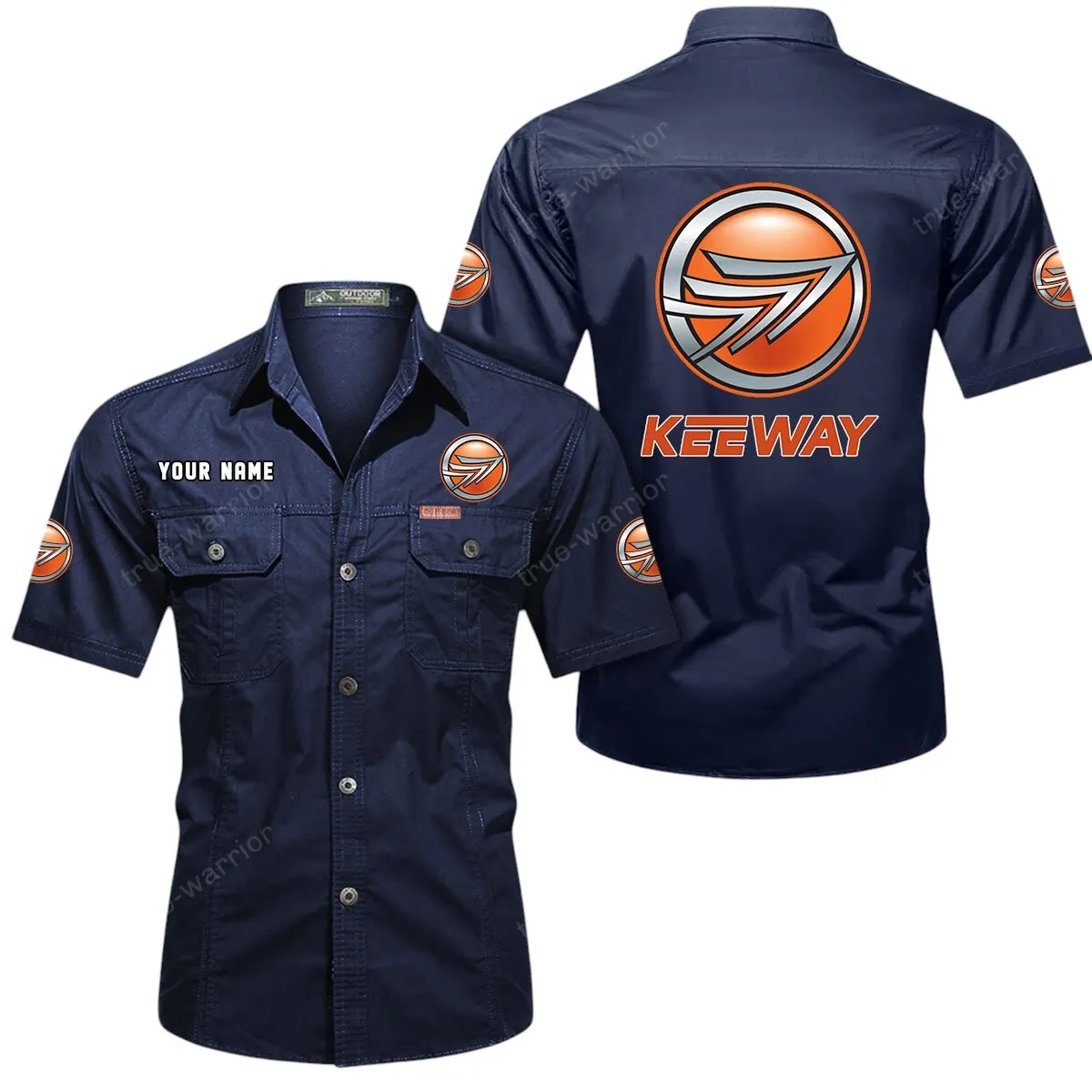 Keeway Motorcycles Short Sleeved Shirt, All Over Print Button Shirt CAR444052625850 – Dark Blue