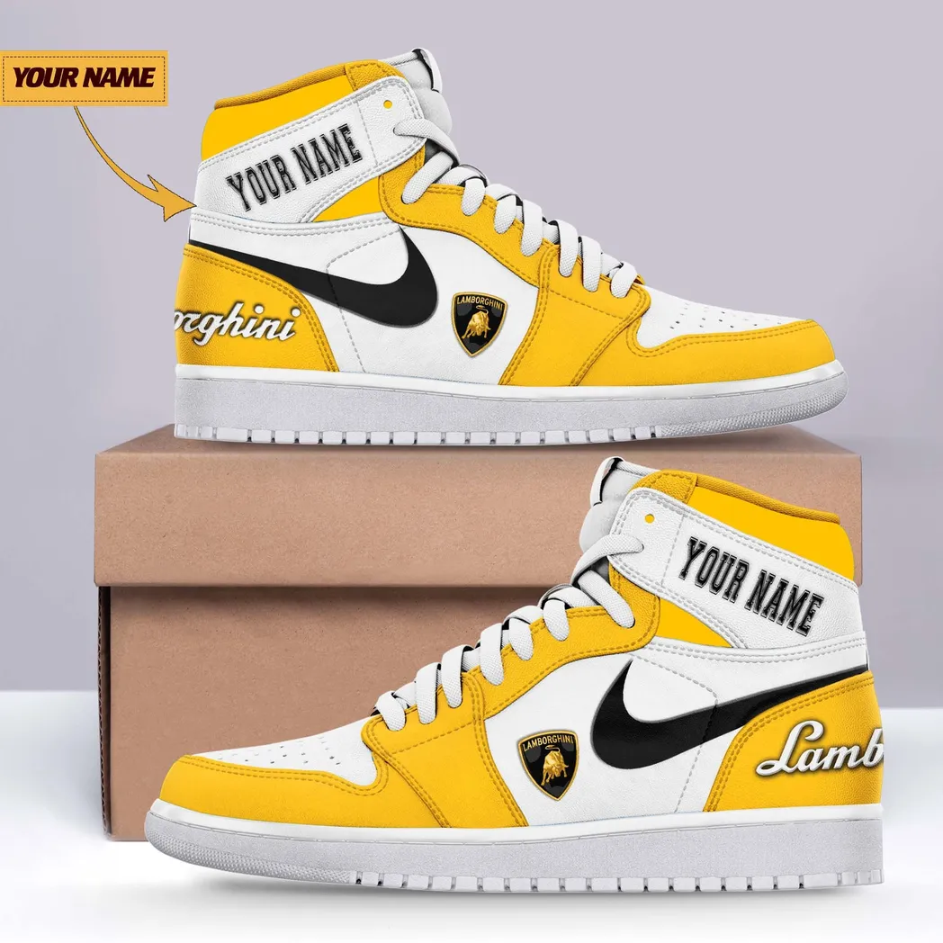 Lamborghini Air Jordan 1 High Sneakers, Nike Sneaker For Lamborghini Lovers CAR317032425686 - Yellow