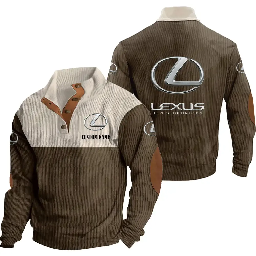 Lexus Stand Up Collar Base Shirt CAR20012107, CAR All Over Print Stand Up Collar Base Shirt - Brown