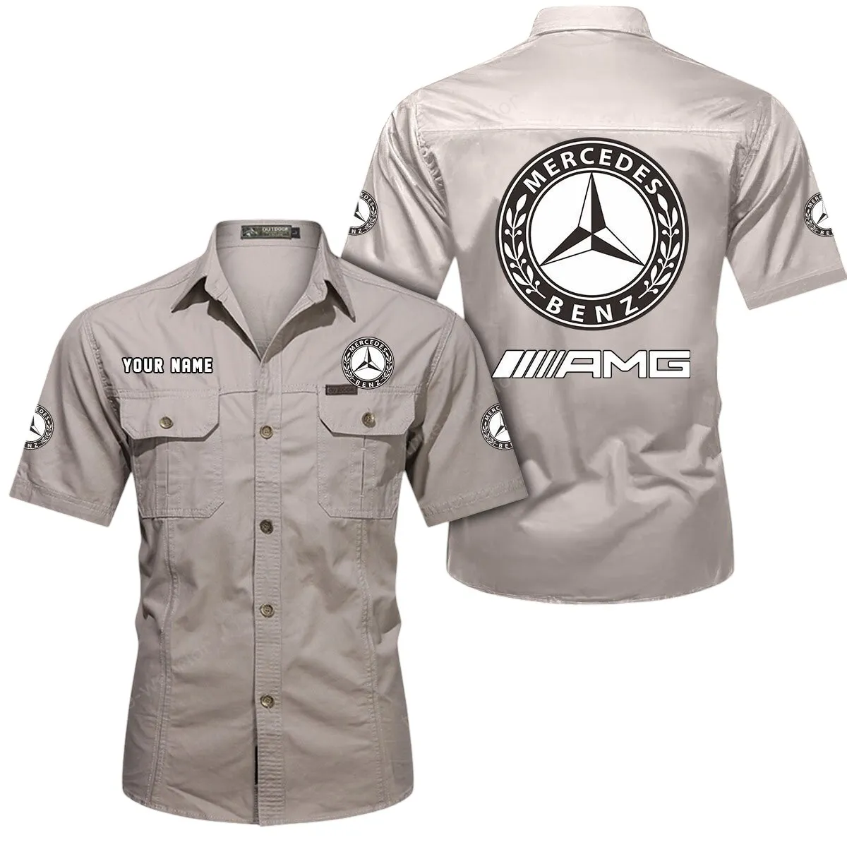 Mercedes AMG Short Sleeved Shirt, All Over Print Button Shirt CAR444052625874 - Khaki