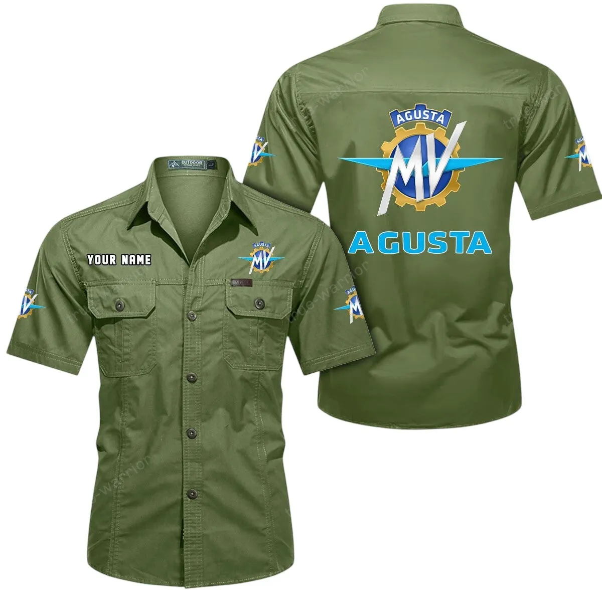 MV Agusta Short Sleeved Shirt, All Over Print Button Shirt CAR444052625871 - Army Green