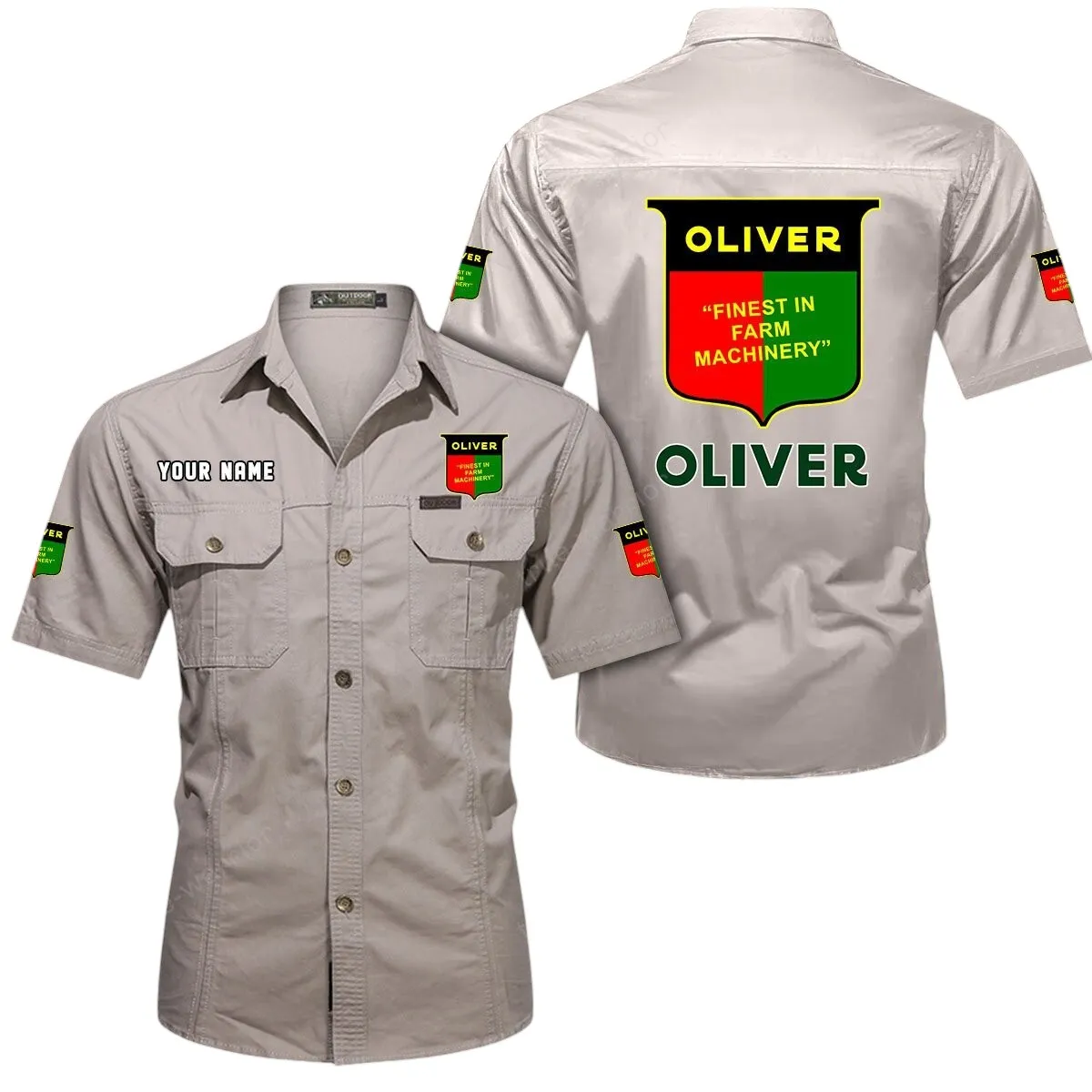 Oliver Tractor Short Sleeved Shirt, All Over Print Button Shirt CAR444052625915 - Army Green