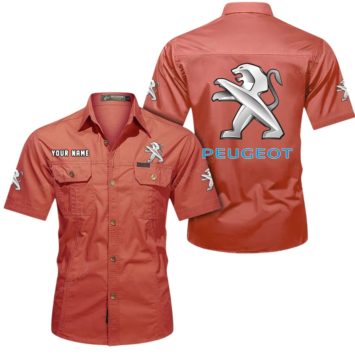 Peugeot Short Sleeved Shirt, All Over Print Button Shirt CAR444052625802 - Khaki