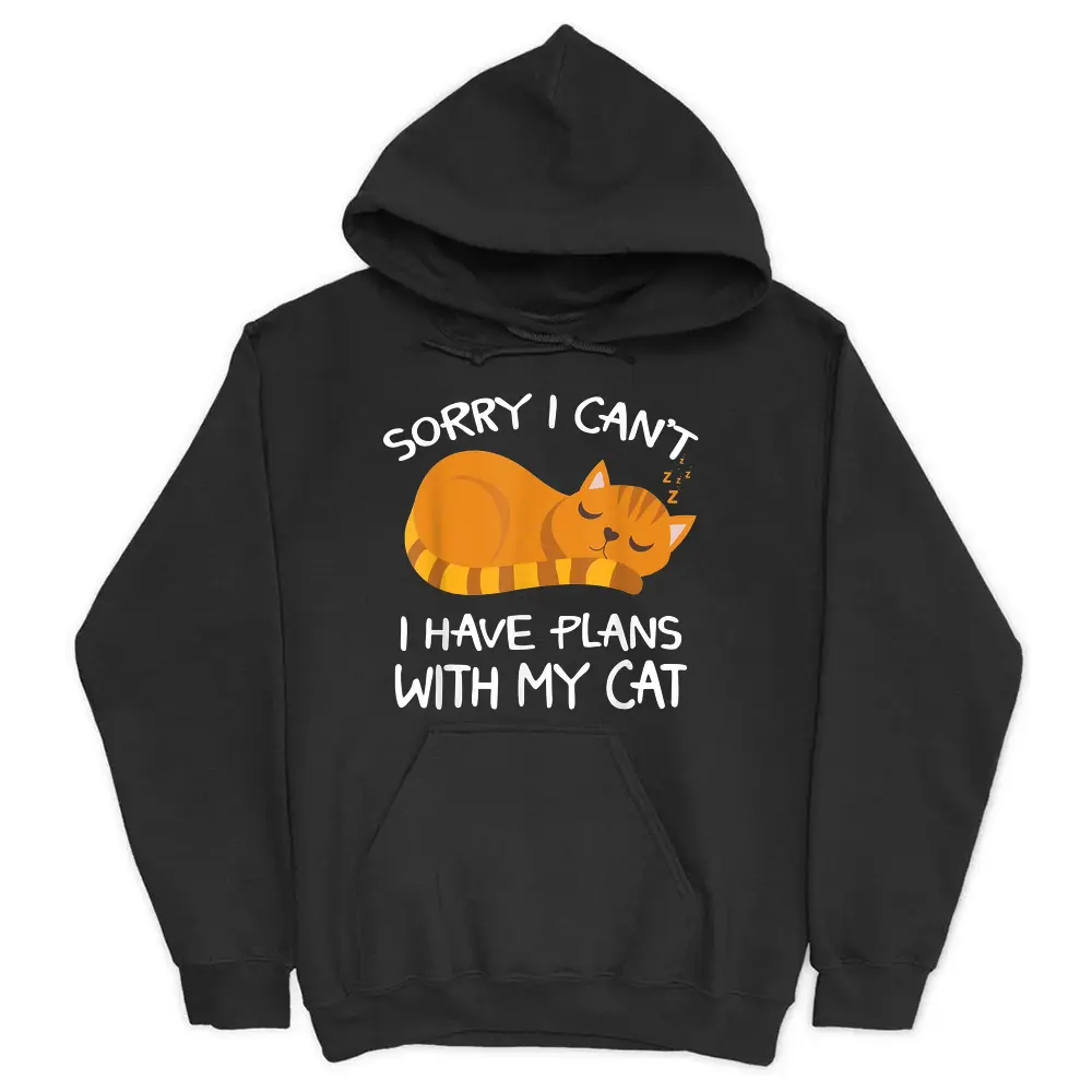 Retro Cat I’m Sorry I Can’t I Have Plans With My Cat Hoodie – Black