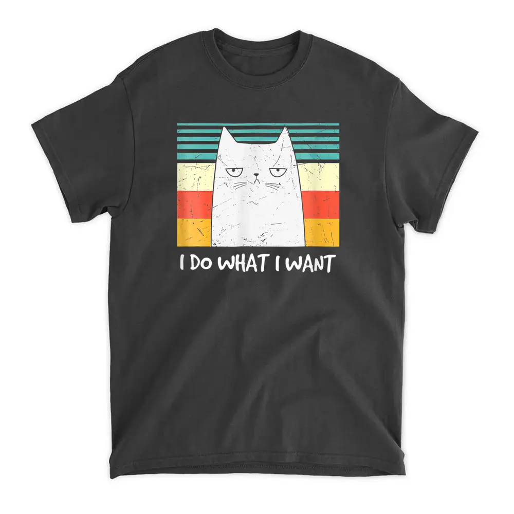 Retro Meow Cat I Do What I Want Funny Black Cat Lovers T-Shirt – Black