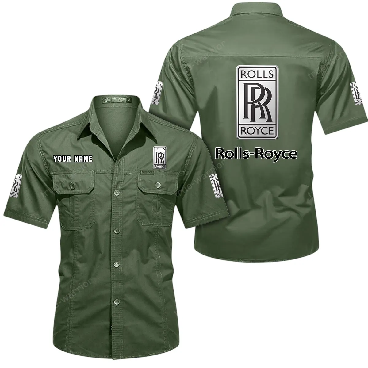 Rolls Royce Short Sleeved Shirt, All Over Print Button Shirt CAR444052625804 - Army Green
