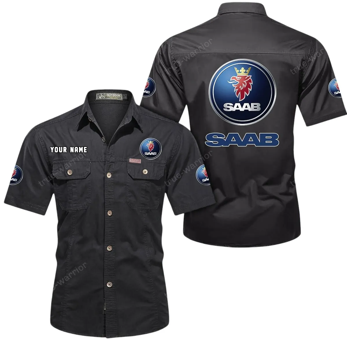Saab Automobile Short Sleeved Shirt, All Over Print Button Shirt CAR444052625865 – Black