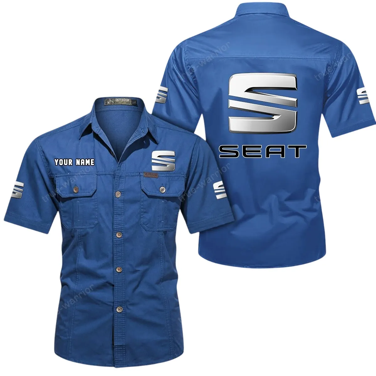 Seat Short Sleeved Shirt, All Over Print Button Shirt CAR444052625794 – Cowboy Blue