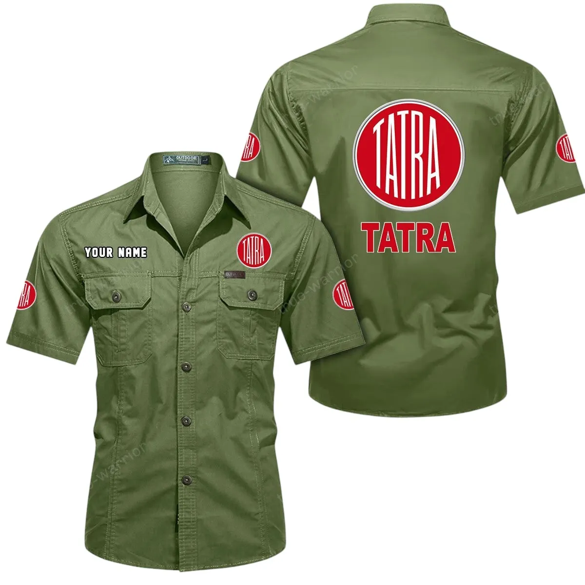 Tatra Short Sleeved Shirt, All Over Print Button Shirt CAR444052625878 - Army Green