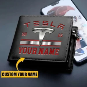 Tesla Horizontal Leather Wallet, Gift For Tesla Lovers, Gift For Him, Husband, Boyfriend CAR37030425122