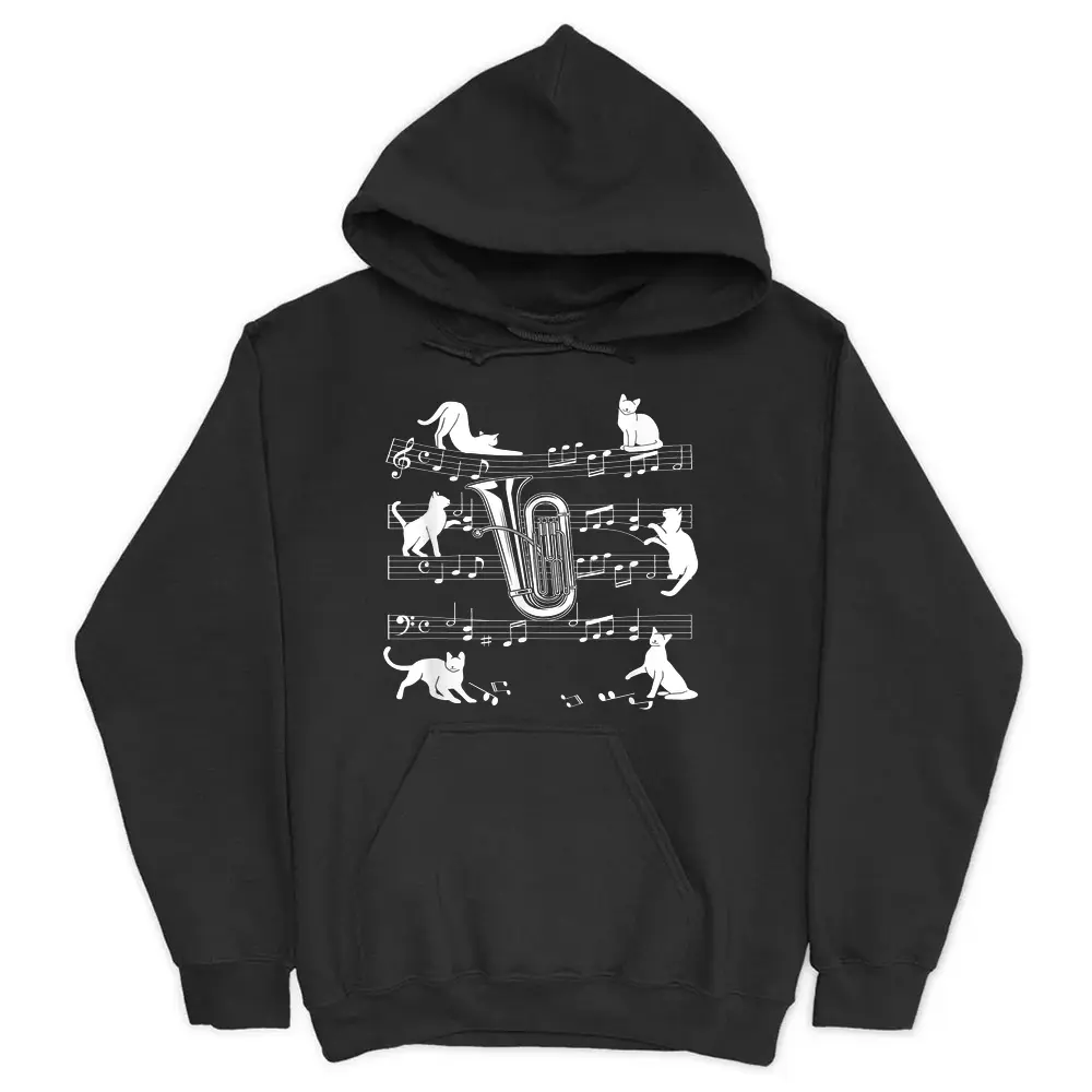Tubist Cats For Cat Loving Tuba Player Hoodie – Black