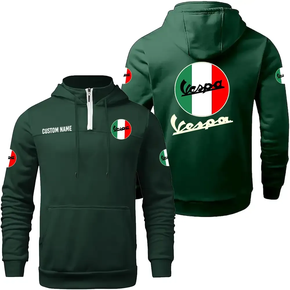 Vespa Casual Stand up Collar Hoodie CAR0301022192, CAR All Over Print Casual Stand up Collar Hoodie - Dark Green