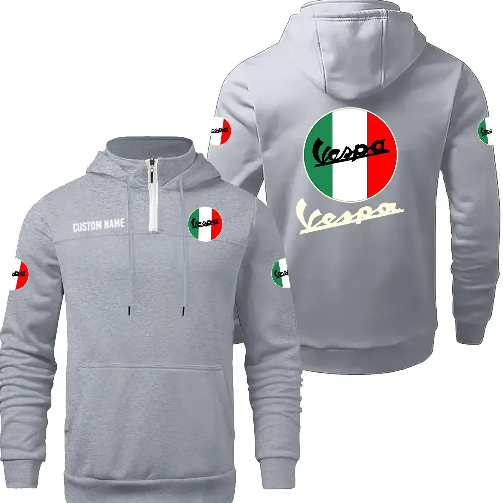 Vespa Casual Stand up Collar Hoodie CAR0301022192, CAR All Over Print Casual Stand up Collar Hoodie - Grey