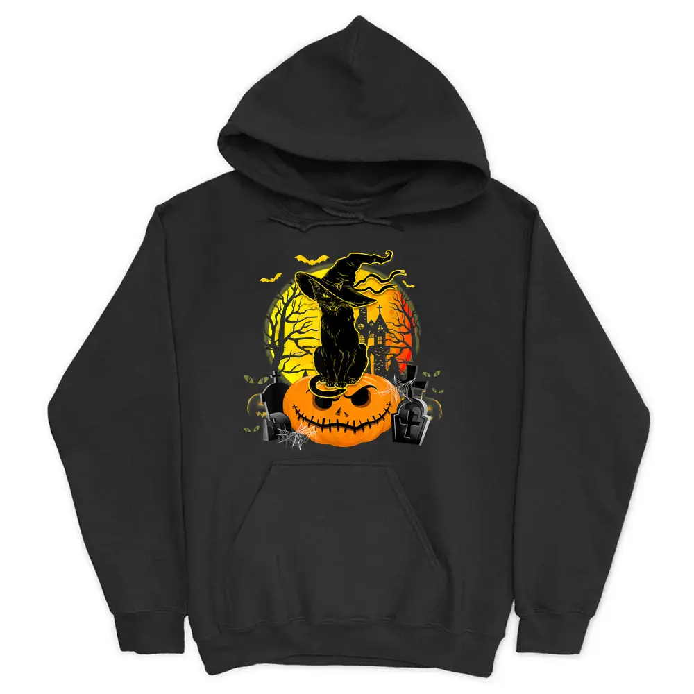 Vintage Black Cat Witch Scary Halloween Costume Kids Boys Hoodie – Black