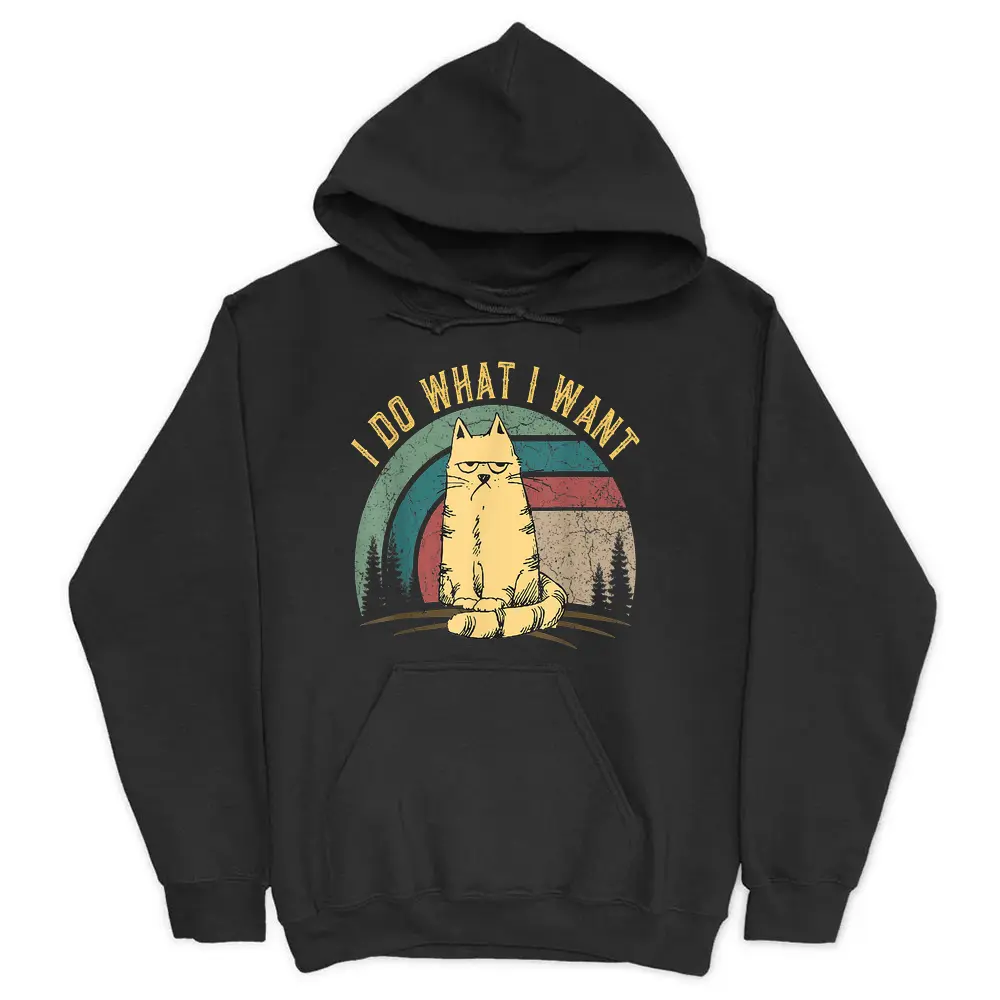 Vintage Meowy Cat Lovers Funny Cat I Do What I Want Cat Hoodie – Black