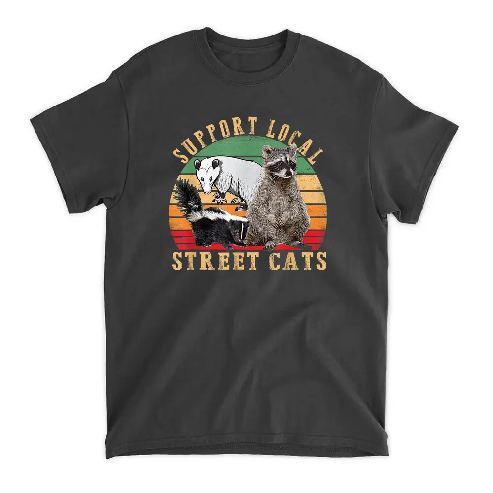 Vintage Support Local Street Cats Raccoon Skunk T-Shirt – Black