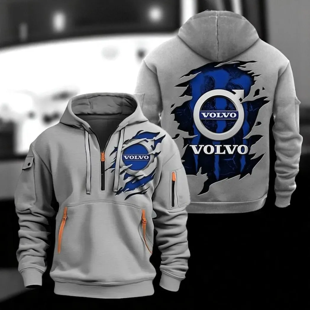 Volvo Hoodie Half Zipper CAR0217092028, All Over Print Hoodie Half Zipper – Gray