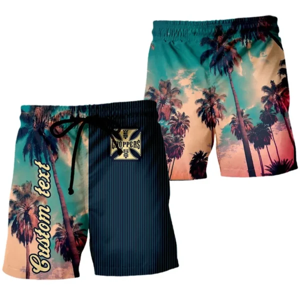 West Coast Choppers Vintage Beach Pants Palm Custom, All Over Print Shorts CAR431041625397