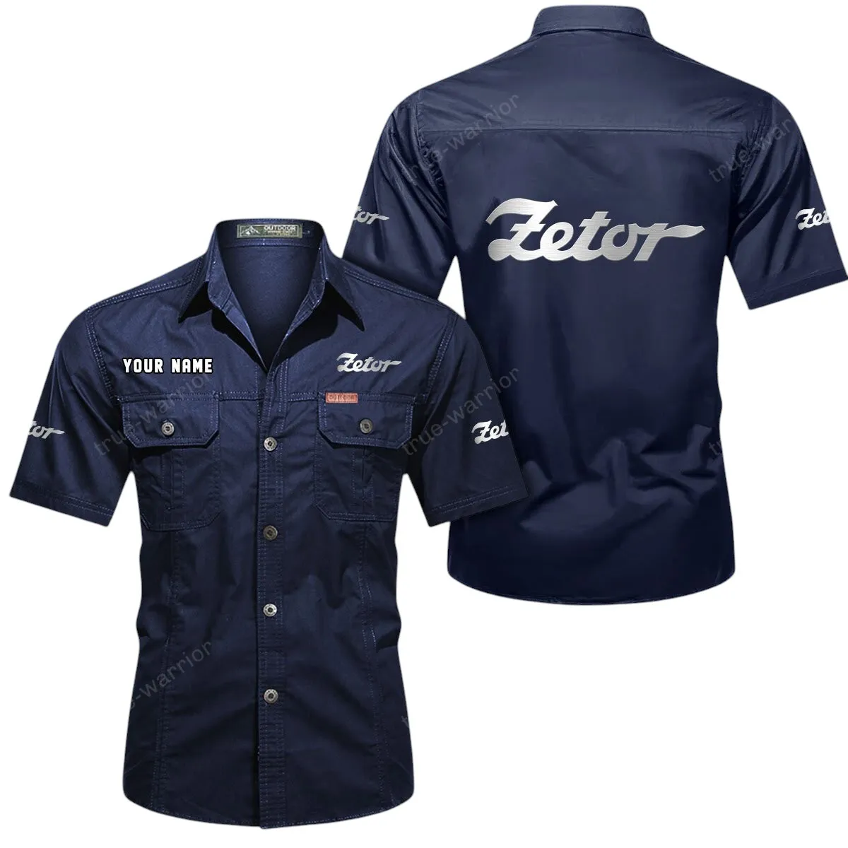 Zetor Short Sleeved Shirt, All Over Print Button Shirt CAR444052625895 – Dark Blue